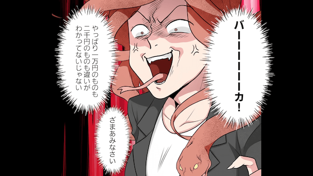 主人公からお祝いのための高級ケーキを依頼された同級生は「どうせ味なんてわかんないくせに!」と思い、安物のケーキを提供しました。 それから数日後、仕事中の同級生のもとに、主人公とホテルのオーナーがやってきて…。
