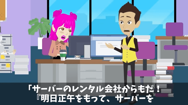 社員たちは次々と契約先から解除の連絡が来ていることを同級生に報告しました。 そして、会社のサービスがすべて止まってしまうことを知った同級生は頭を抱えたのです。