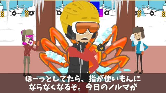 今回は『私の寿司屋を元同級生60人が無視してドタキャンした話』を紹介します。 冷凍倉庫での作業中、監督に注意された同級生は「すみません…!」と謝りました。 そして同級生は、カニが少し傷んでいることを監督に報告して…。