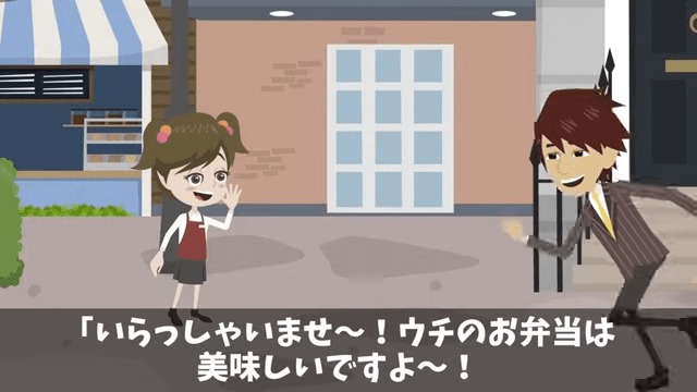 大好物のから揚げの匂いがしたため、その場に駆け寄った主人公。 すると小さな少女が店の前で弁当の呼び込みをしていて…。
