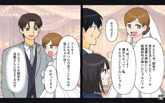 今回は『新郎新婦「あんたたちの席ないから(笑)」私たち「はぁ…」→そのまま全員で立って参加してやった結果』を紹介します。 主人公と夫は親友の結婚式に出席することに決めましたが、いざ結婚式場へ向かうと、そこには主人公と夫の席がありませんでした。 そして主人公が親友に事情を聞くと、親友は新郎に高校3年間ずっと主人公から嫌がらせを受け、主人公のせいで学校を辞めることになったのだと嘘をつき始めて…。