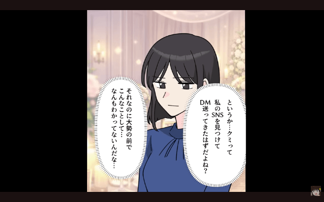 親友と新郎は主人公と夫と揉めている最中にゲストを会場に通し、ゲストに「呼んでもないのに来ちゃった非常識な人たちがいるんです~」と嘘をつきました。 さらに新郎は、主人公と夫に「立って参加するか帰ってくれ」「あ、ご祝儀は忘れずにな」と言ってきたのですが…。