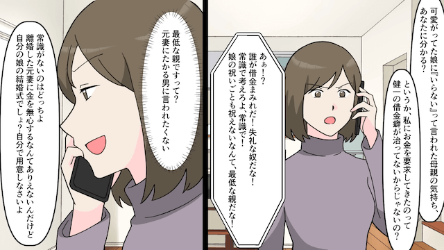 今回は『私を捨てた元夫の継子「結婚祝いまだ?」⇒真実を伝えた結果』を紹介します。 ある日、元夫の継子に「結婚祝い、100万円まだ?」と突然要求された主人公。 さらに元夫にも「育ての親だろ?振り込みでいいから!」と言われ、主人公は困惑するのでした。