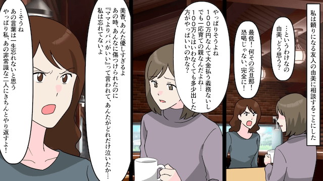 困り果てた主人公は友人に相談し、弁護士を頼ることを考え始めて…。