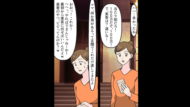 数日後、継子が100万円の使い道を問い詰めると、元夫は借金の返済にあてると自白して…。