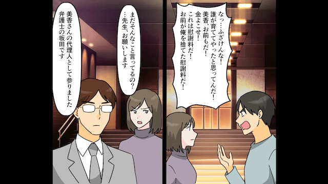 今回は『私を捨てた元夫の継子「結婚祝いまだ?」⇒真実を伝えた結果』を紹介します。 継子に問い詰められた元夫は、100万円を借金返済にあてると自白しました。 元夫のまさかの言葉に、継子はショックを受けて…。
