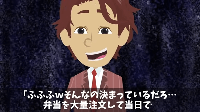 今回は『弁当250人分をドタキャンした男「頼んでないから!」直後⇒俺「何したか分かってるのか?」正体を明かした結果』を紹介します。 偵察から戻った後輩社員は、女性の店の弁当は低価格でボリュームもあって敵わないと男性社員に報告しました。 それを聞いた男性社員は「敵わない店なんだったら潰せばいいんだよ!そんな小さな弁当屋!」と怒鳴り…。