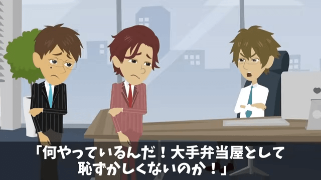 今回は『弁当250人分をドタキャンした男「頼んでないから!」直後⇒俺「何したか分かってるのか?」正体を明かした結果』を紹介します。 主人公は男性社員にキャンセル料を支払うよう伝え、大手弁当チェーンの社長にも今回のことを報告すると告げました。 男性社員は少女の言葉がかなり効いたようで、素直に謝罪をして帰っていき…。