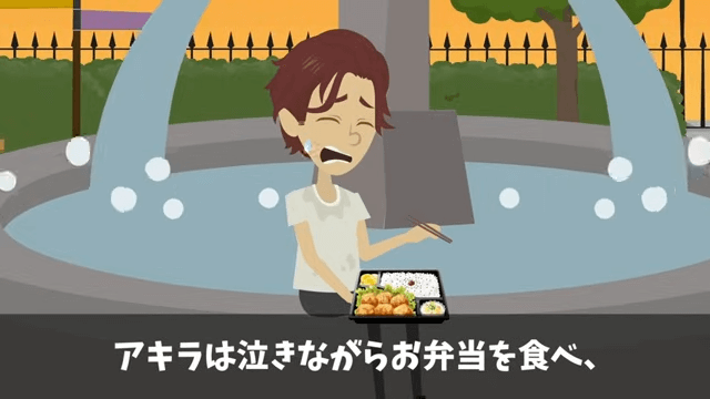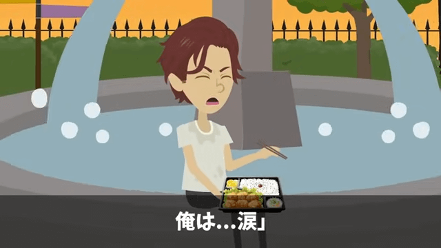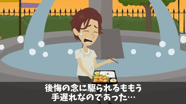 少女からもらった弁当を泣きながら食べる男性社員。 自分のしてしまったことを激しく後悔しますが、すでに何もかもが出遅れなのでした。