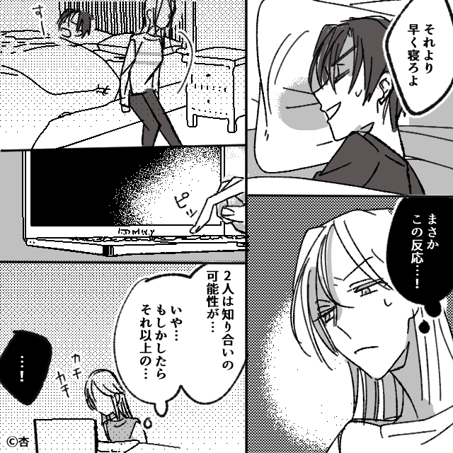 夫に女性客のことを報告した主人公は、夫の反応に違和感を抱きます。 そこで夫のパソコンを調べると、夫と女性客が知り合いだったと判明したのでした。