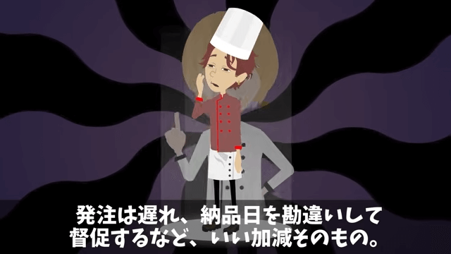 シェフは納品日を勘違いして督促するなど、いい加減そのものでした。 しかしオーナーも同じようなタイプだったため、シェフはクビにならずに済んでいたのです。