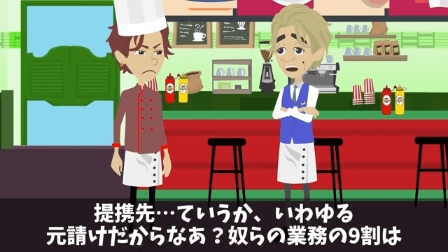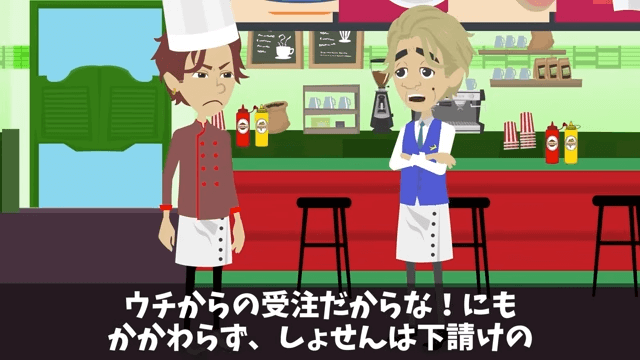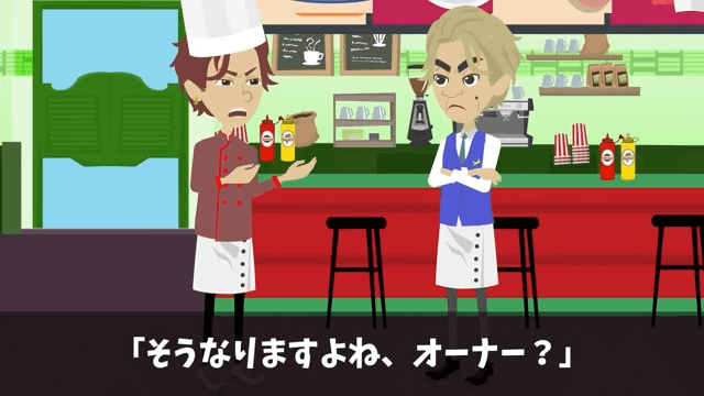 シェフは主人公からビーフの納品を拒否されたとオーナーに伝えました。 それを聞いたオーナーは「おいおい?それって、ウチに対する絶縁宣言じゃねえか?」と言い、下請けである主人公に腹を立てていて…。