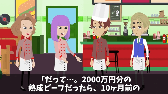 話を聞いていた女性従業員は、シェフに「2000万円分の熟成ビーフは契約中止だって言ってましたよね?」と尋ねました。 そして女性従業員は、10ヶ月前に主人公が熟成ビーフを納品していたと話したのです。