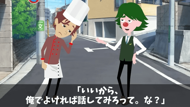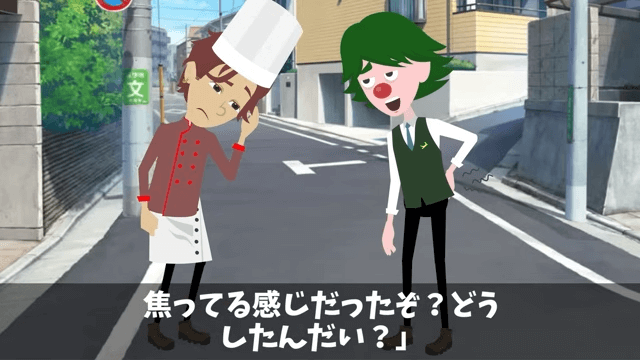 ステーキハウスを飛び出したシェフは、見知らぬ男性に衝突してしまいました。 すると男性は「ん?あんた、なんか焦ってるな?今の衝突より前から焦ってる感じだったぞ?どうしたんだい?」とシェフに尋ねて…。