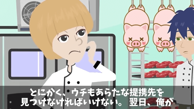 今回は『高級ステーキハウスのシェフに突然『2000万円分の契約中止』を宣告された話』を紹介します。 シェフが自分の勘違いをごまかすために契約中止を告げてきたのだと知った従業員は「腹立つけど、考え方によってはよかったのでは?あんなひどい業者と手が切れて…」と言いました。 すると主人公は「うん…そう考えることにするか…」と言い…。