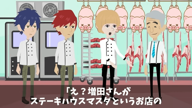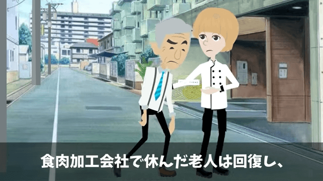 主人公は老人のことを心配し、自分の会社で休んでもらうことにしました。 そして回復した老人は、自分がステーキハウスのオーナーであることを明かしたのです。