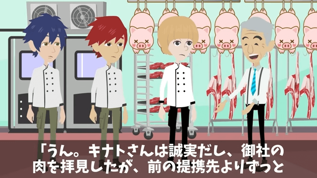 今回は『高級ステーキハウスのシェフに突然『2000万円分の契約中止』を宣告された話』を紹介します。 主人公に連れられて会社で休んだ老人は、自分がステーキハウスのオーナーであることを明かしました。 さらに老人は、最近まで提携していた食肉加工会社との契約を解消したようで…。