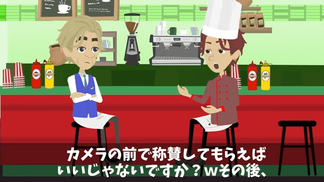 シェフは悩んだ末、主人公の食肉加工会社から肉を盗めばいいと言い出しました。 それを聞いたオーナーは「なるほどな!」とうなずいて…。