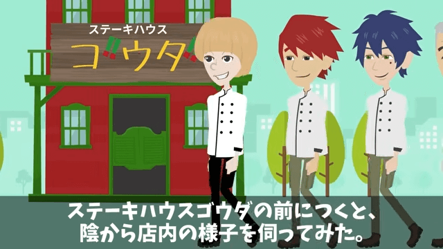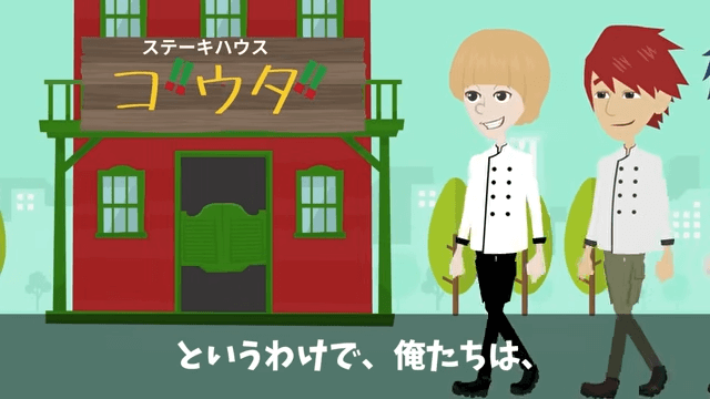 主人公たちは老人の提案でステーキハウスに行ってみることにしました。 そのとき、主人公たちはタレントが買収されて舌鼓を打つふりをしているのではないかと思っていたのですが…。