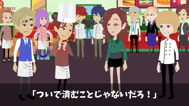話を聞いていた主人公は、シェフたちが自分の会社の貯蔵庫から肉を盗んだことに気がつきました。 そして主人公が「あんたらなあ!犯罪だぞ!」と怒ると、シェフが慌てて謝ってきたのです。