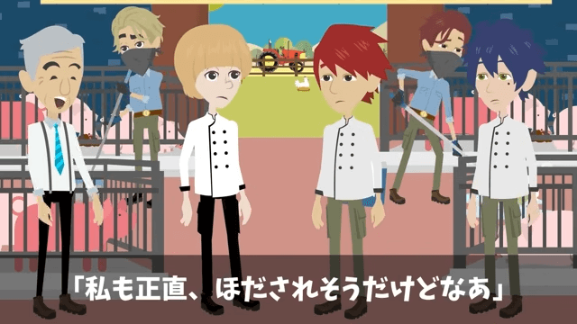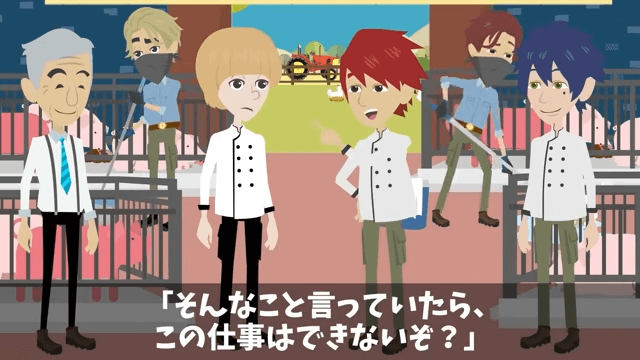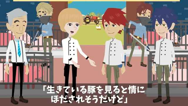 養豚場を訪れた主人公は「生きている豚を見ると情にほだされそうだけど」と言います。 すると従業員が「そんなこと言っていたら、この仕事はできないぞ?」と言いました。