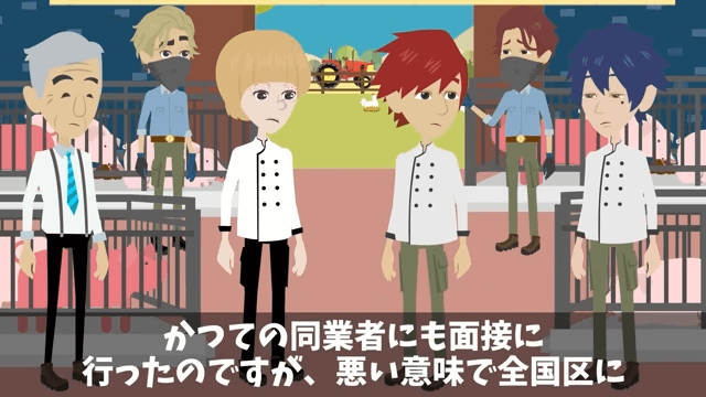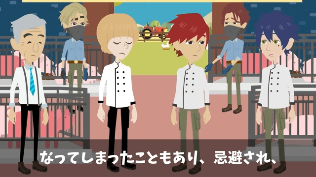 主人公はシェフとオーナーが養豚場で働いていることに気がつきました。 そこで従業員が「養豚場でなにやってんの?」と尋ねると、シェフはこれまでの経緯を説明したのです。