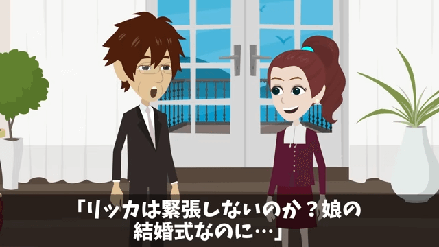 この日、主人公は大事な娘の結婚式に来ていました。 すると妻が、娘よりも主人公のほうが緊張していると言ってきたのです。