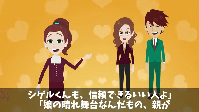 今回は『娘の結婚式で…「貧乏人は帰れ!」新郎側のゲストに馬鹿にされたので翌日、反撃した結果』を紹介します。 この日、娘の結婚式に来ていた主人公は、とても緊張していました。 そして主人公は、妻に緊張していないのかと尋ねて…。