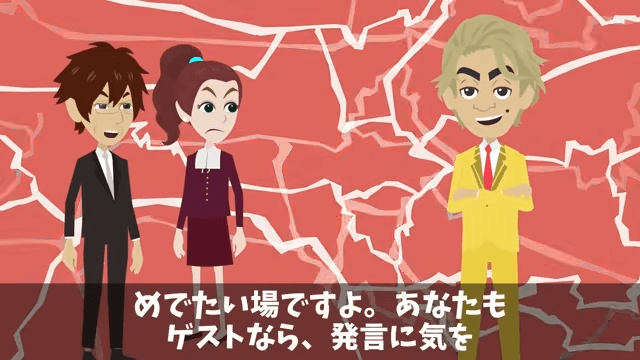 今回は『娘の結婚式で…「貧乏人は帰れ!」新郎側のゲストに馬鹿にされたので翌日、反撃した結果』を紹介します。 頭取の発言に対し、主人公は「あの、さっきから失礼ですよ」と怒りました。 さらに主人公は、頭取が離婚の話をしたことについても注意して…。