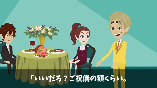 今回は『娘の結婚式で…「貧乏人は帰れ!」新郎側のゲストに馬鹿にされたので翌日、反撃した結果』を紹介します。 頭取は主人公たちに向かって「聞いておかないといけないことがあってな」と言いました。 そして頭取は「お前ら、ご祝儀はいくらくらい包んだ?」と主人公たちに尋ねて…。