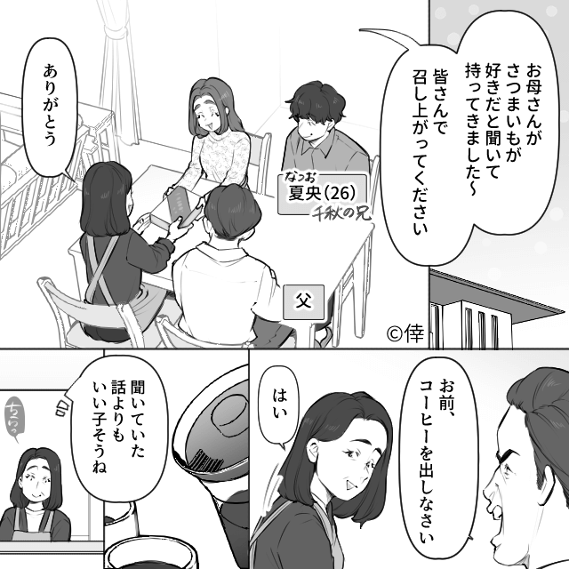 今回は『息子の彼女を異常に「優遇」する父の話』を紹介します。 兄の彼女が実家で勝手に同棲を始めたようで、困っている様子の母。 約1年前、兄の彼女は実家にやってきて…。