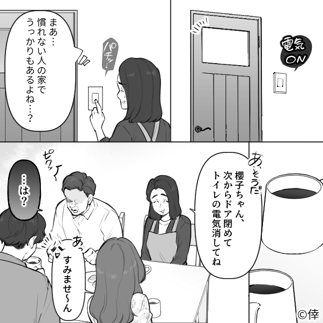 初めて兄の彼女と会った日、第一印象はいい子だと感じた母。 しかしドアを閉めなかったり電気を消さなかったり気になる部分があったため、母は彼女に注意をしました。