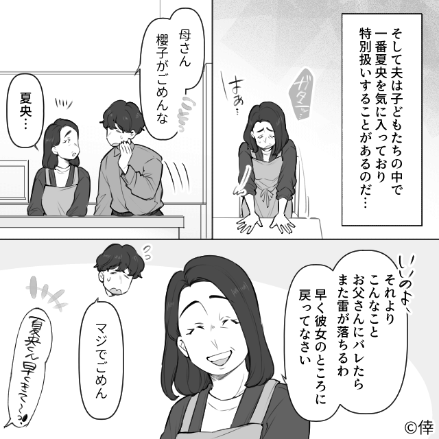 今回は『息子の彼女を異常に「優遇」する父の話』を紹介します。 兄の彼女を庇い、母に激怒した父。 そのときに、父は彼女の名前を呼び捨てにしていて…。