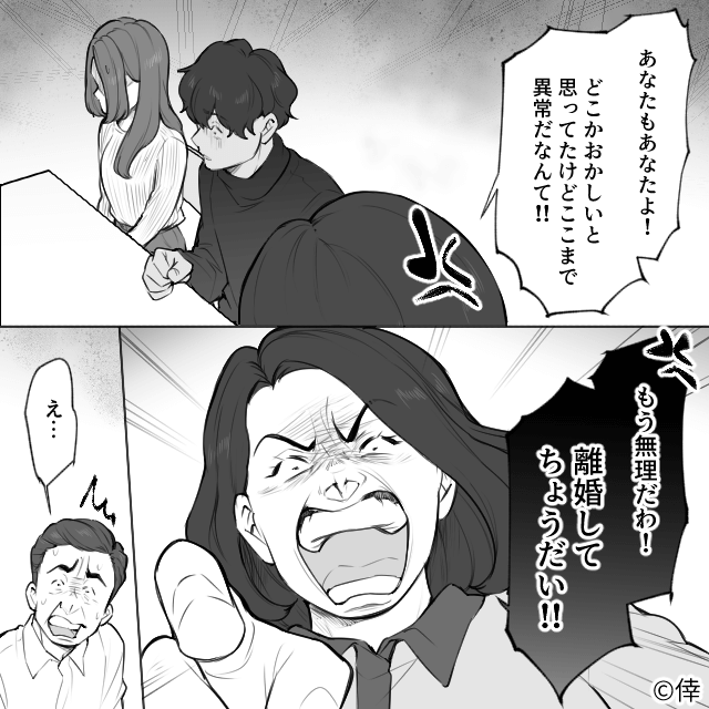 愕然とした主人公と母は父たちを呼び出し、母は離婚を突きつけたのでした。
