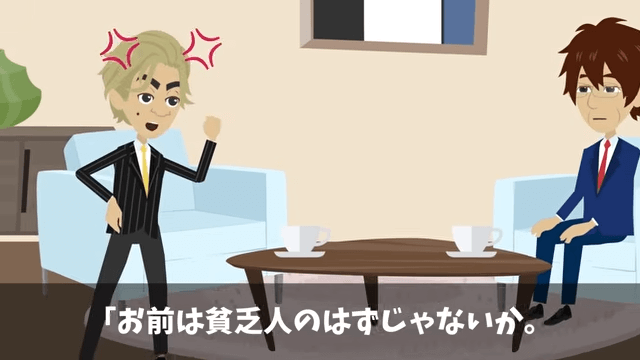 今回は『娘の結婚式で…「貧乏人は帰れ!」新郎側のゲストに馬鹿にされたので翌日、反撃した結果』を紹介します。 大口顧客が待っているはずの部屋に主人公がいたため、困惑する頭取。 そして頭取が「大口顧客だとでも言うつもりじゃないだろうな!?」と言うと、主人公は「そのまさかですよ」と答えて…。