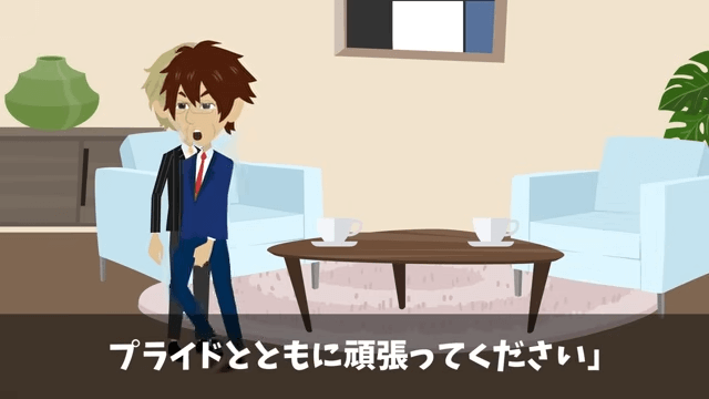 主人公は頭取に、まずは娘に対する失言を謝るべきだと伝えました。 すると頭取が「俺にもプライドってものがあるんですよ!」と言って謝罪を拒否したため、主人公は「でしたら、話はもう終わりですね」と言い放ったのです。