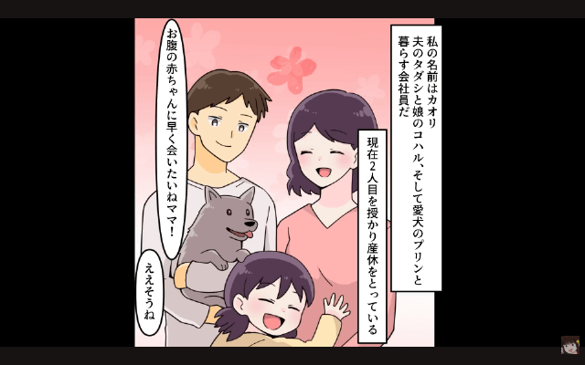 今回は『つわりで苦しむ私に「育児はお前の仕事だろ?俺は犬と散歩行ってくる(笑)」⇒娘と家を出て行った結果』を紹介します。 夫と娘と愛犬と暮らす主人公は、現在2人目の子どもを妊娠中ということで、産休を取っていました。 しかし幸せな日々の中で、主人公は夫が愛犬だけを可愛がり、他の家族への対応には差をつけているように感じていて…。