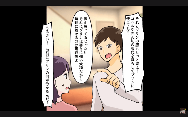 今回は『つわりで苦しむ私に「育児はお前の仕事だろ?俺は犬と散歩行ってくる(笑)」⇒娘と家を出て行った結果』を紹介します。 夫は娘と向き合うことを約束しましたが、1ヶ月も経たないうちにまた愛犬だけを溺愛するようになりました。 さらに夫が家事もせず愛犬に構ってばかりいるため、主人公はもうすぐ2人目の子どもが生まれるということで、夫にも家事をしてもらわないと困ると伝えたのですが…。