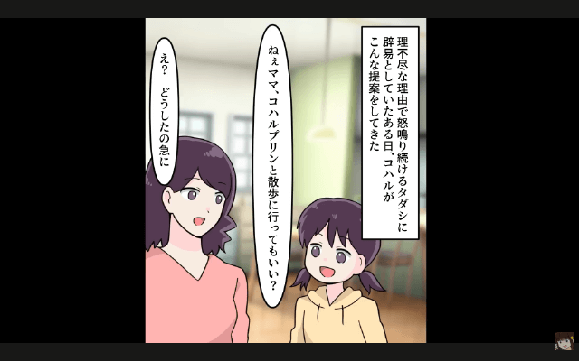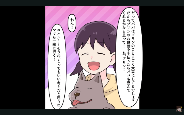 夫は「家事も育児もお前の仕事だろ?」と言って主人公に家事を押しつけ、よく愛犬のことで怒鳴ってくるようになりました。 そんなある日、娘が夫に喜んでほしい一心で、愛犬の散歩をしたいと申し出てくれたのですが…。