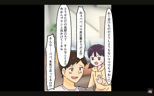 今回は『つわりで苦しむ私に「育児はお前の仕事だろ?俺は犬と散歩行ってくる(笑)」⇒娘と家を出て行った結果』を紹介します。 夫が愛犬のことばかり大切にするせいで、娘は夫を避けるようになり、主人公たち家族の間には決定的な溝ができてしまいました。 そんなある日、主人公は予定よりも早い陣痛が来たため、娘を不安にさせないよう気を配りながら夫に助けを求めたのですが…。