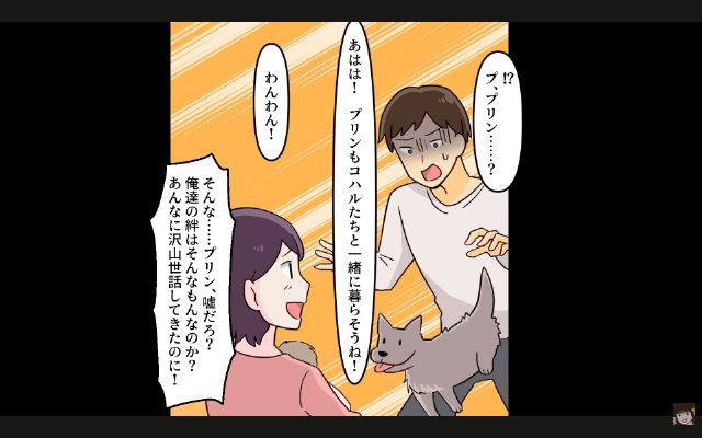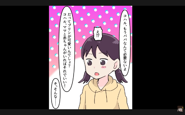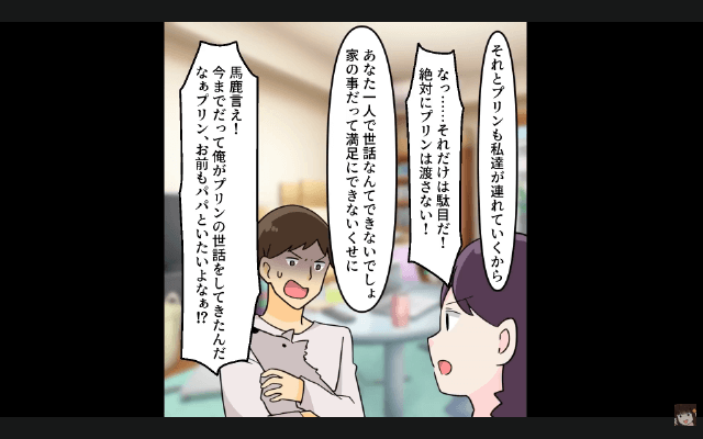 今回は『つわりで苦しむ私に「育児はお前の仕事だろ?俺は犬と散歩行ってくる(笑)」⇒娘と家を出て行った結果』を紹介します。 娘たちのために夫との決別を考えた主人公は、夫のもとへ向かい、今後は夫の世話をしないことを宣言しました。 すると夫が「俺たち家族だろ!」と言って家事を押しつけようとしてきたのですが、主人公は「家族じゃなくなるって言ってんの」と言って…。