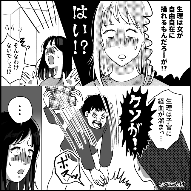 夫が手を握ってきたため、生理になったことを伝えた主人公。 すると夫は突然激怒し「俺が嫌いだからって生理になるな!」と怒鳴り…。