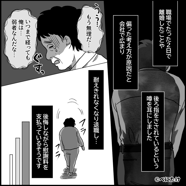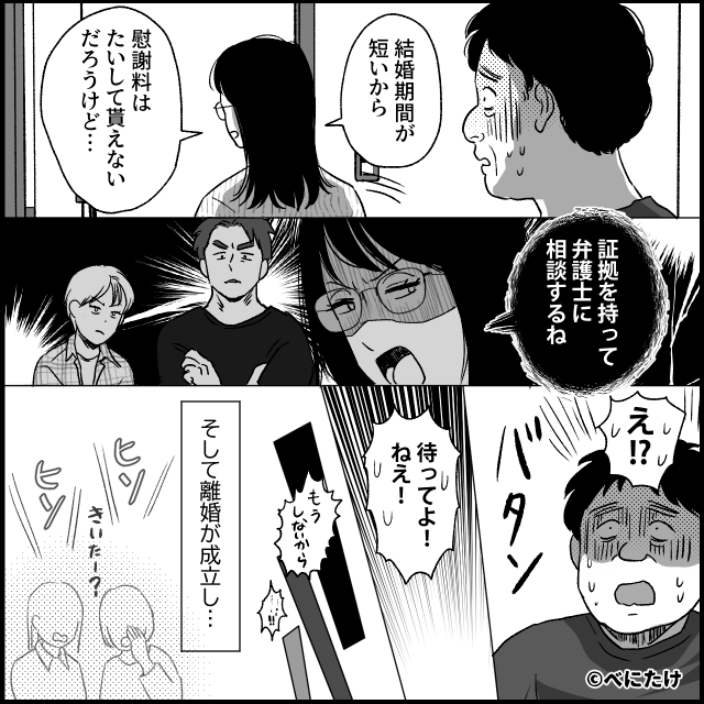 今回は『入籍からたった2日で離婚した衝撃の理由』を紹介します。 友人の夫が現れた途端、一気にオドオドし始めた夫。 女性にだけ強気な夫に、主人公は呆れるのでした。