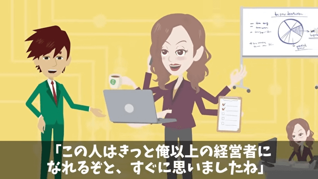 娘の夫は、商談の場で娘と出会ったことを頭取に話しました。 そして、いかに娘が賢く、知識豊富で行動力があるかを頭取に説明したのです。