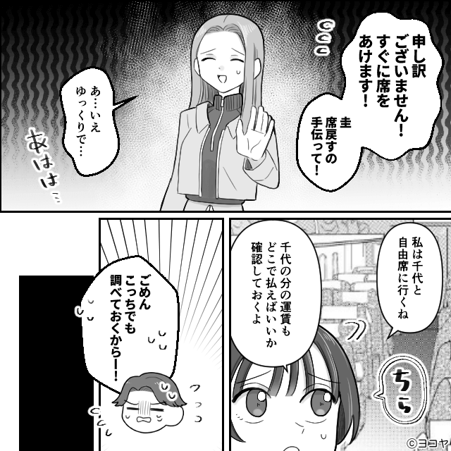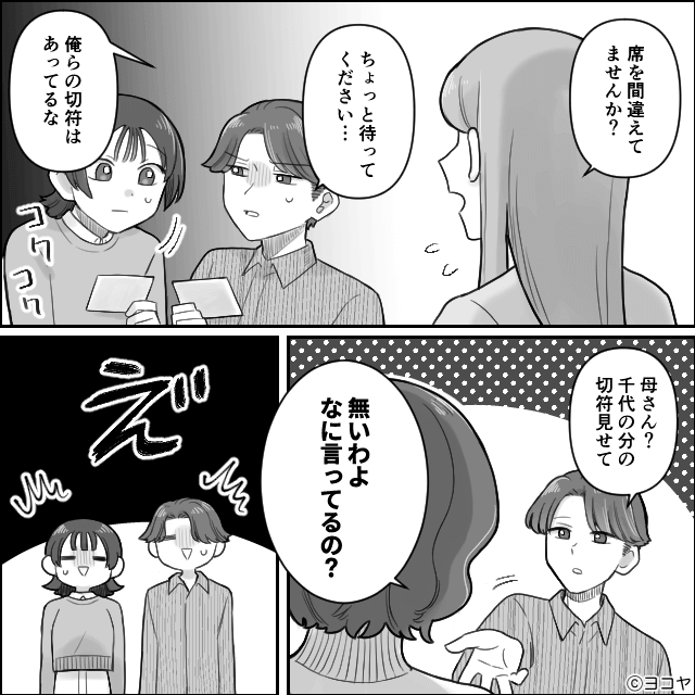 今回は『悪気はないけど「害悪」すぎる義母の話』を紹介します。 言い合いをする主人公たちに、声をかけてきた女性。 女性は「そちらの席は私の席のはずですが…」と主張し…。