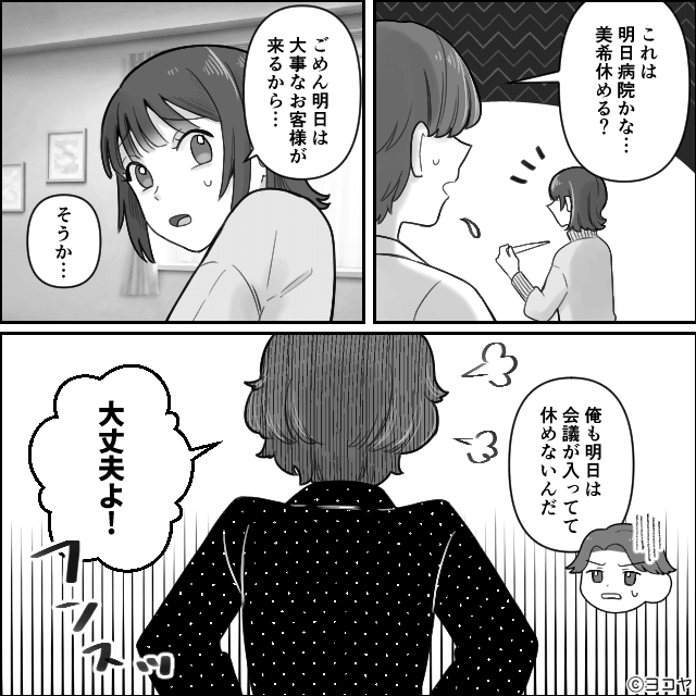 しかし主人公も夫も仕事を休めないため困っていると、義母が「看病なら任せて!」と言ったのでした。