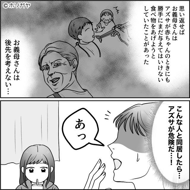 娘が牛乳アレルギーだと知っていて、カレーに牛乳を入れた義母。 そんな義母と同居すると娘が危険な目に遭うと考え、主人公は同居に反対するのでした。