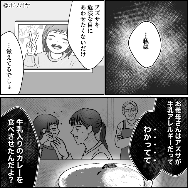 そのため主人公は、義母が娘に牛乳を食べさせたときの話をして…。