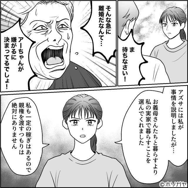 離婚を盾に脅してきた夫に愛想が尽き、夫が過去に書いていた離婚届をそのまま提出した主人公。 そして娘にも意見を聞き、親権をとることにしたのでした。