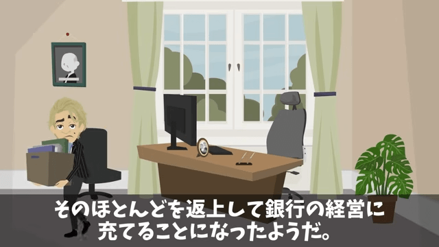 今回は『娘の結婚式で…「貧乏人は帰れ!」新郎側のゲストに馬鹿にされたので翌日、反撃した結果』を紹介します。 主人公は伝言の中で、頭取は退任せざるを得ないだろうと言っていました。 そして、自分の置かれている状況を悟った頭取は「ち、ちくしょおおお!」と悔しがり…。